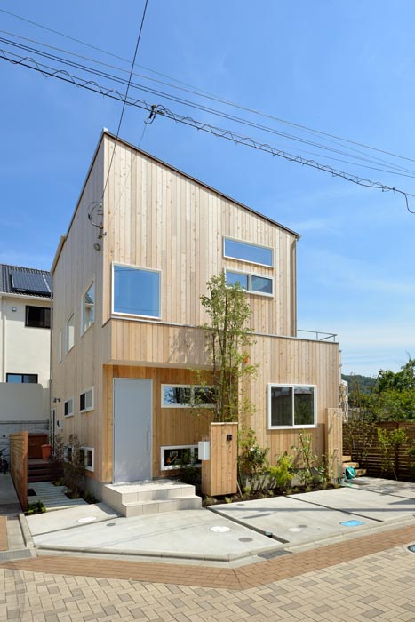 海があり山がある葉山町。町民あげてリスペクトする御用邸を擁するインペリアルビーチ。その緩やかな丘の上で周囲をゆったりとした住宅街にA邸があります。海に近い湘南だからこそ、米杉レッドシダーの外壁は最強の材を纏うことになるのです。