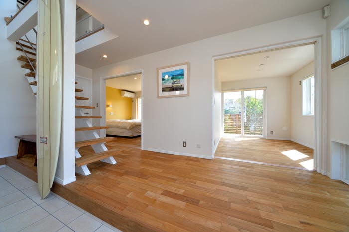 海のそばに住んで知ることは、天気に恵まれれば、注ぐ陽光は強く健康的に人間のエネルギーを高めてくれること。しかし時には潮風と太陽の光はとてつもない厳しい表情もみせることも。実は湘南のこうした厳しい海洋性の気候風土をしっかりと受け止めるのは、「木の家」をおいてほかに見当たらない。中でも「米杉レッドシダー」は調湿性、経年変化による味わいにおいては、とりわけ優秀な材といわれています。