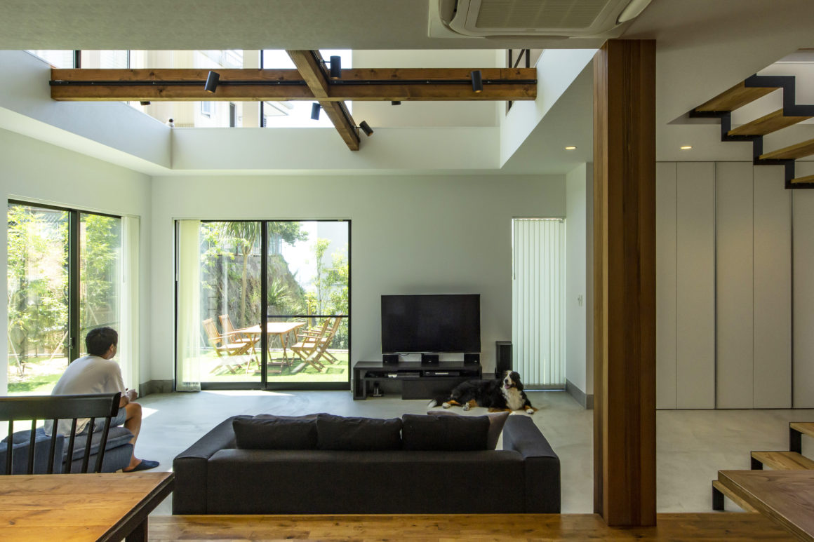 鎌倉の海の見える高台の奥座敷、そう海の見える高台にY邸はある。まだ多少未完成だという外観は薄いベージュの外壁と木のコンビネーションが美しい。室内は、白い壁と黒いモルタル、濃い木の色の3色がメインカラーとなっている。