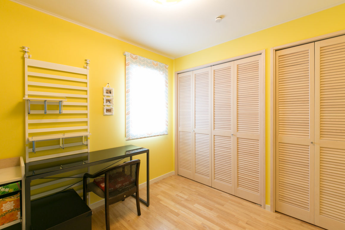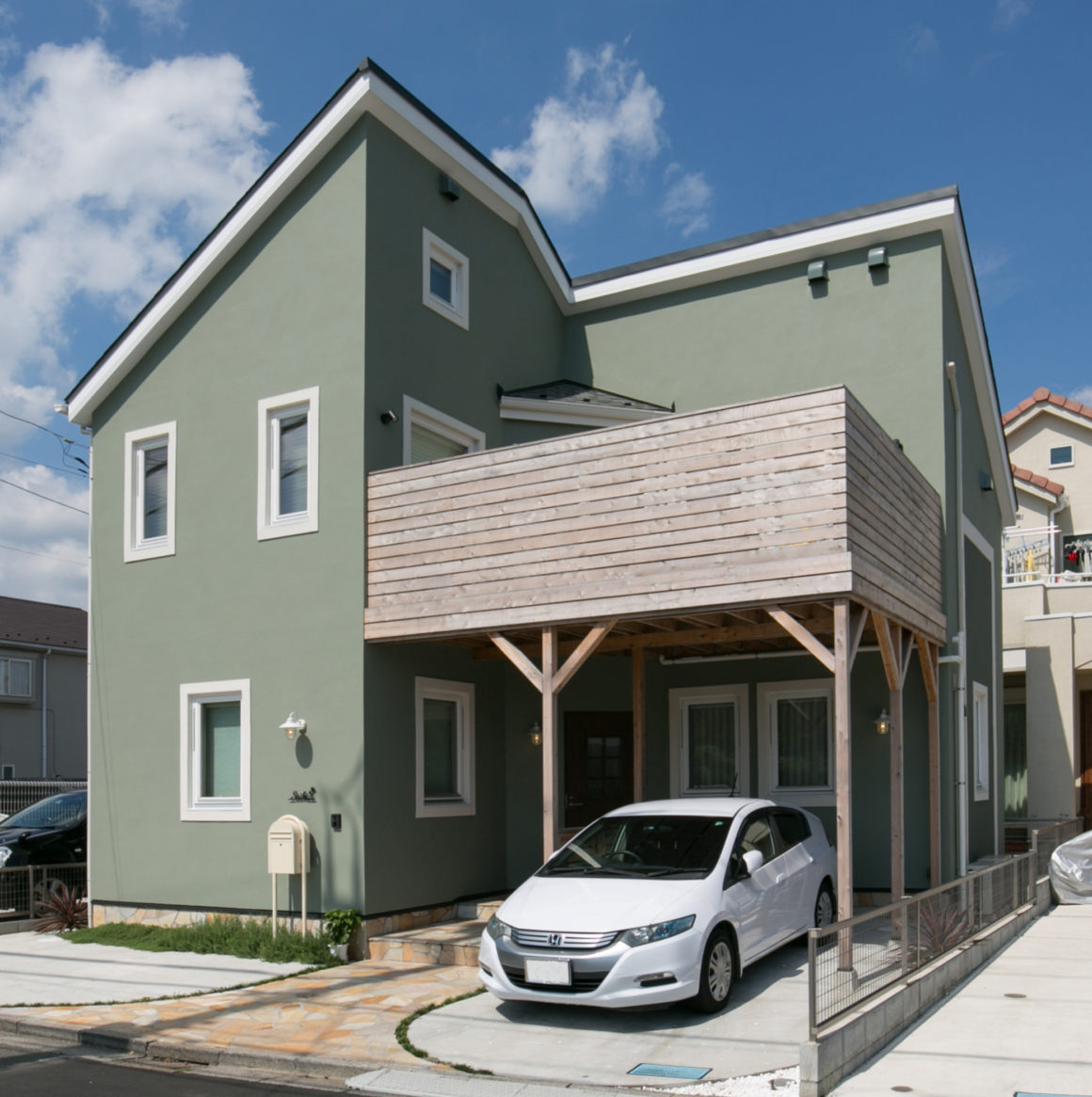 個性的な色彩とウッドデッキが静かな町並みの中でもひときわ目をひくS邸。2階リビングとしてウッドデッキを併設することでリビングの開放感が大きく広がります。個性的なカラーリングは毎日がリズミカルで楽しくなりますね。
