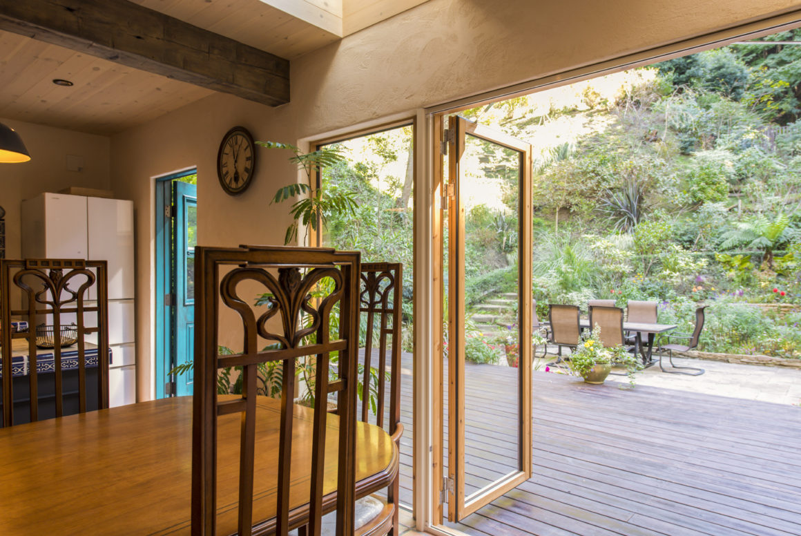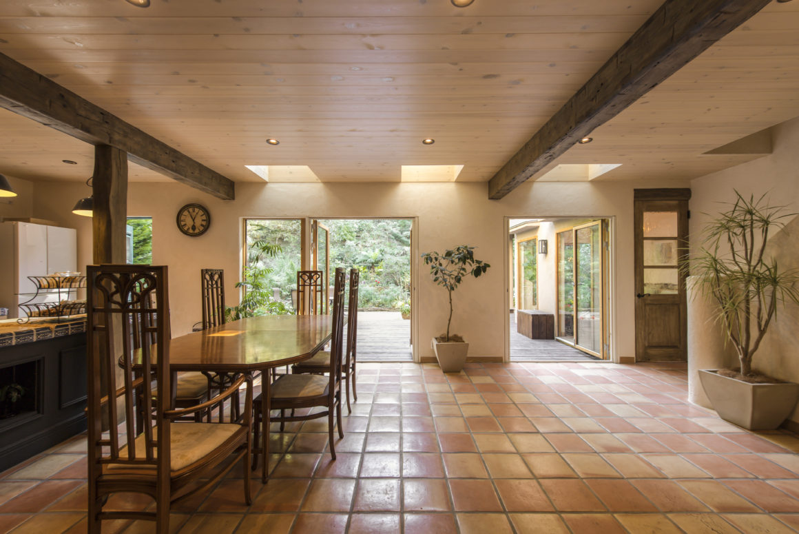 鎌倉の自然の中に佇む家。 デザインのテーマは「サンタフェリノベーション」、サンタフェといえばネイチャーデコールの王道スタイルのひとつ、やはりこのスタイルは時代が変わっても普遍的なものであり、包み込まれる包容力に心がシッポリはまっていくようです。骨組みだけを残し、基礎や構造の補強からはじめたフルリノベーションですが、以前の家の印象を忘れてしまうくらいの様変わりを実現しました。二頭の愛犬に二匹の猫ちゃんの居る、賑やかな家族ですが、ペットにとっても恵まれた自然と住環境で生活そのものが生まれ変わりました。ゲストを招いて外でBBQパーティーをよく行うというオーナーご家族のために、パーティーシーンを想定しながら人が大勢集える大きなデッキと内外を繋ぐ動線計画もこの家のポイントのひとつです。