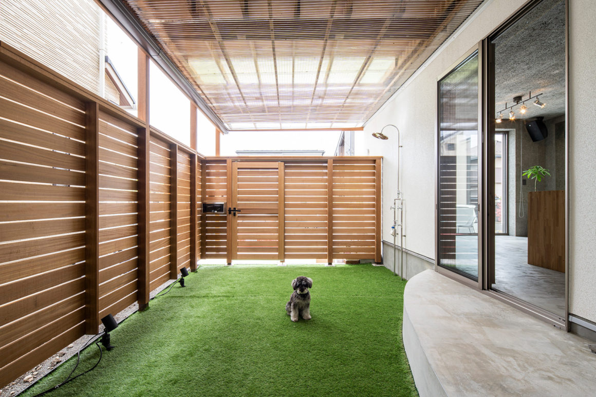 エントランスは愛犬クマのための人工芝の遊び場を兼ねています。扉を開けば大きな土間スペースにご主人のワークスペースと奥様が趣味とされているダンスのためのスタジオのようなフリーゾーン。注文住宅ならではの自由な設計に興味津々のまま上階へ。