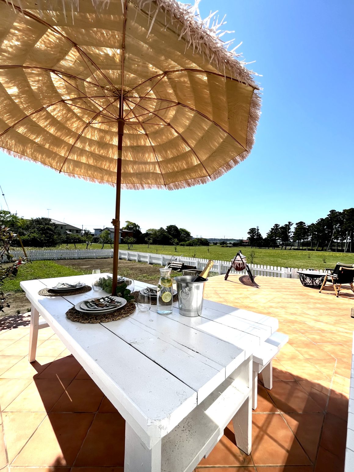 コロナの頃から毎週サーフ&キャンプで出かけることが多くなった。週末通いだったが、それを脱するために房総移住を真剣に考えるきっかけになった。長年通った地域には多くの知り合いもいたことが土地探しにとても有利だったと話す。たまたま売出したこのゴルコースのような景色に一目惚れだった。