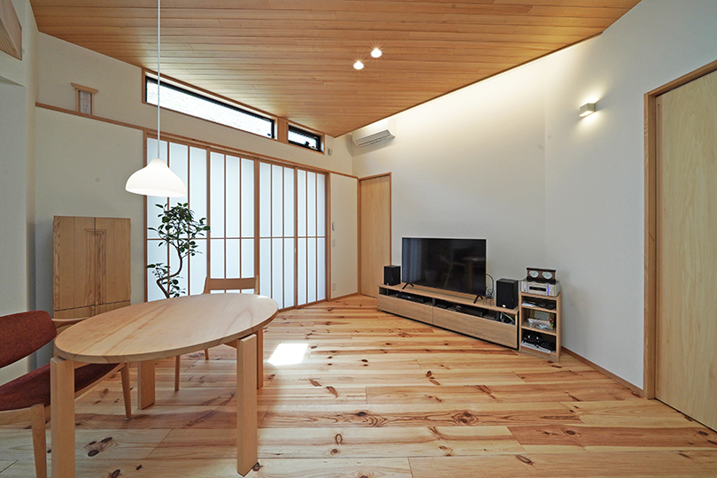 平屋という特徴を生かして天井を高く設定、さらに窓を大きくしたことで室内は数値以上の伸びやかな空間が感じられます。庭の自然を贅沢に活用した佇まいは、都会人からすれば羨望の暮らし方といえるでしょう。
