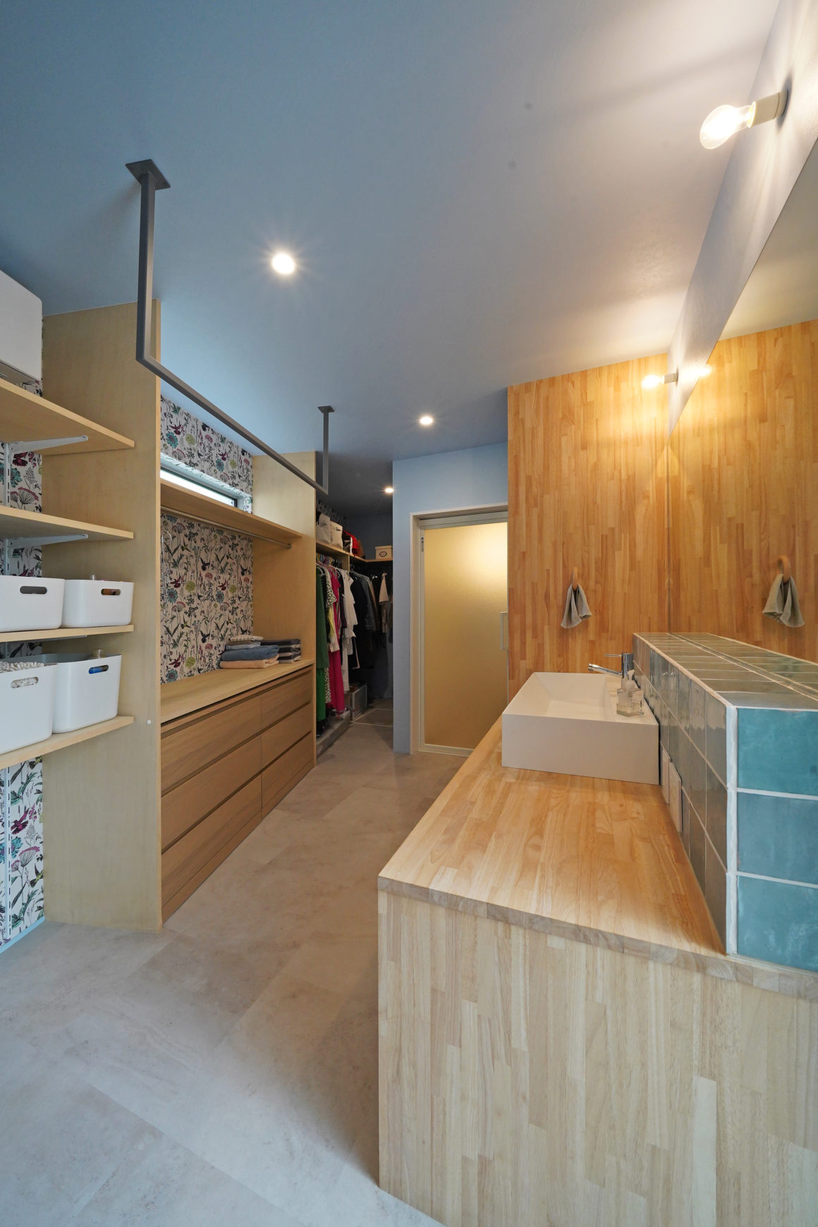 海からお風呂までの動線、1階で洗濯をして、干して、しまえるスペースは主婦の生活動線を楽にしている。