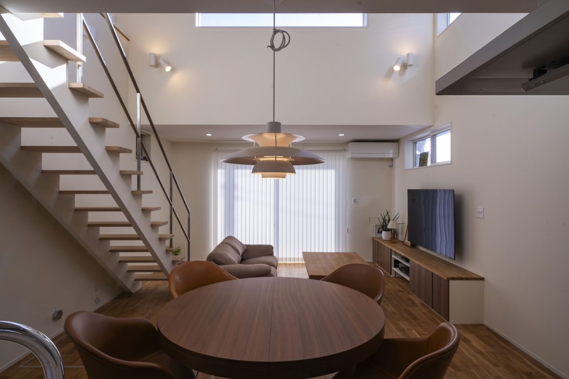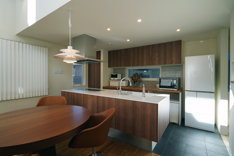 1階のリビングダイニングと2階の各居室は、床、壁の材料と色彩が統一された落ち着いた空間である。外壁だけでなく住まいの空間は飽きのこないデザインが長く暮らすコツなんだろう。人の成長ととともに家族は変化しても家はいつまでも変わらず家族に寄り添っていくものだ。