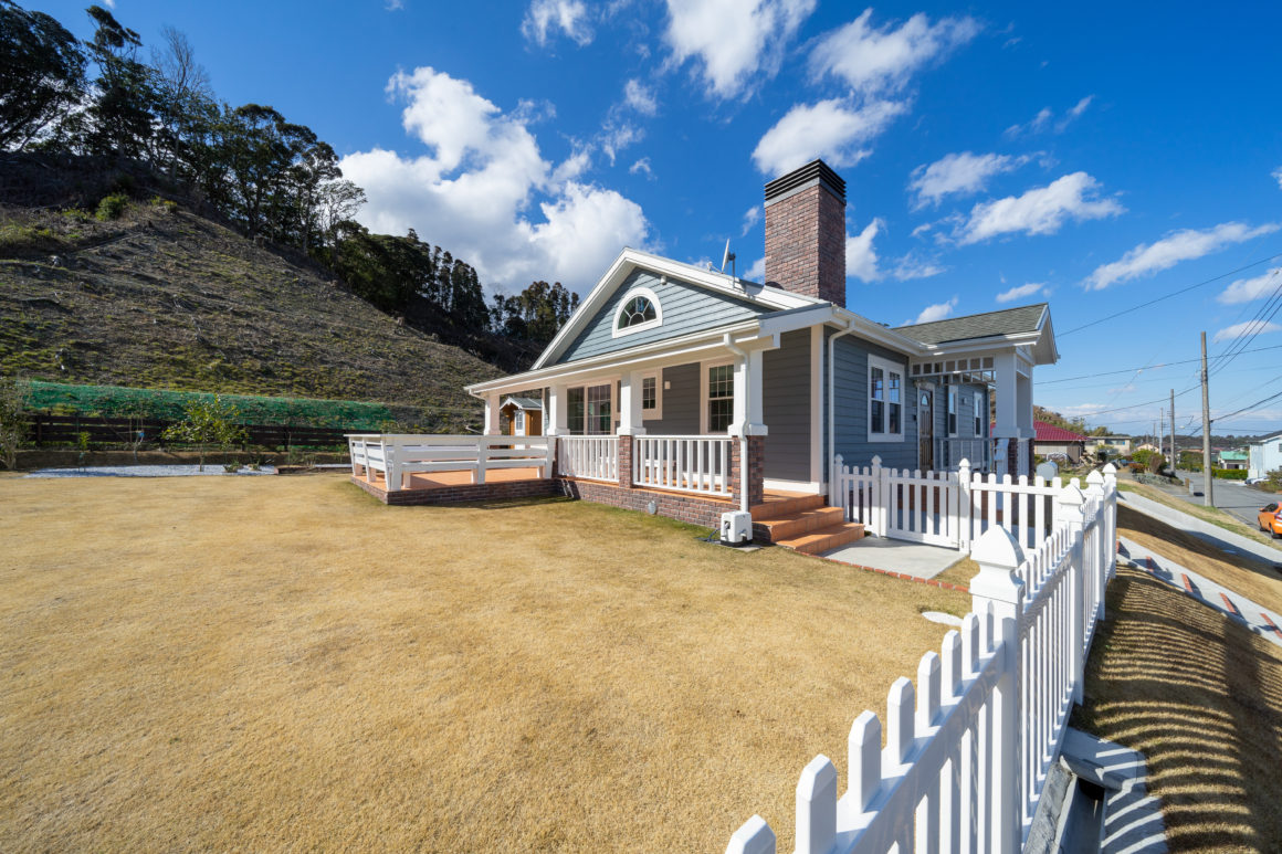 ラップサイディングの外壁に大きな煙突、広い芝生と大きなカバードポーチ。アメリカのカントリーライフがよく似合うN邸は雄大な房総半島、御宿台に建っています。220坪に敷地に建つ平屋はセミリタイヤしたNさんにとっては、どうしてもやりたかった男のロマンが詰まっています。
