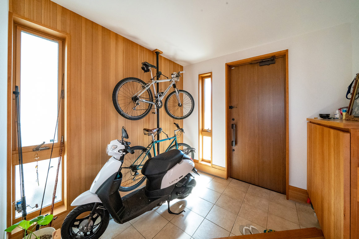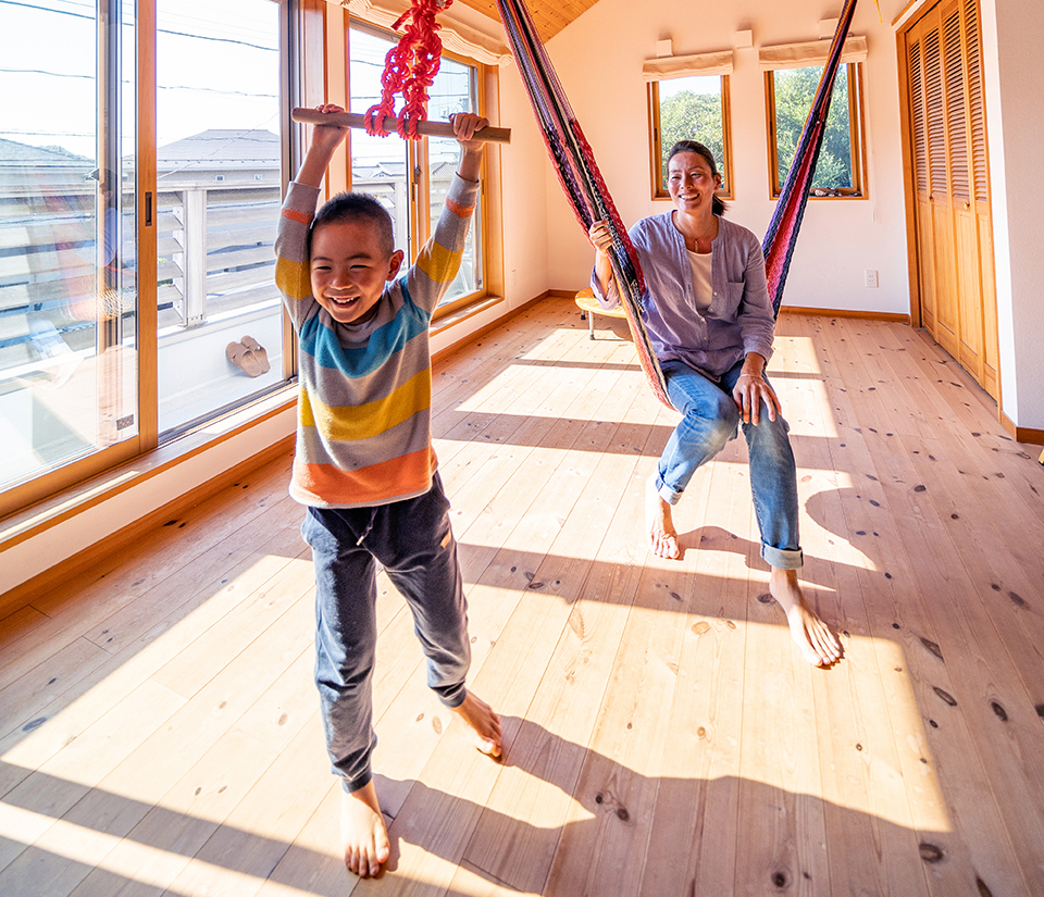 当時ご主人がハンモックを吊るしてくつろいでいた2階のフリースペースはいまや長男の男の子の運動部屋だ。体を動かすことがすきなご家族は、ご主人は釣りに、奥様は夏には葉山の海でシュノーケリングを楽しんでいるという。