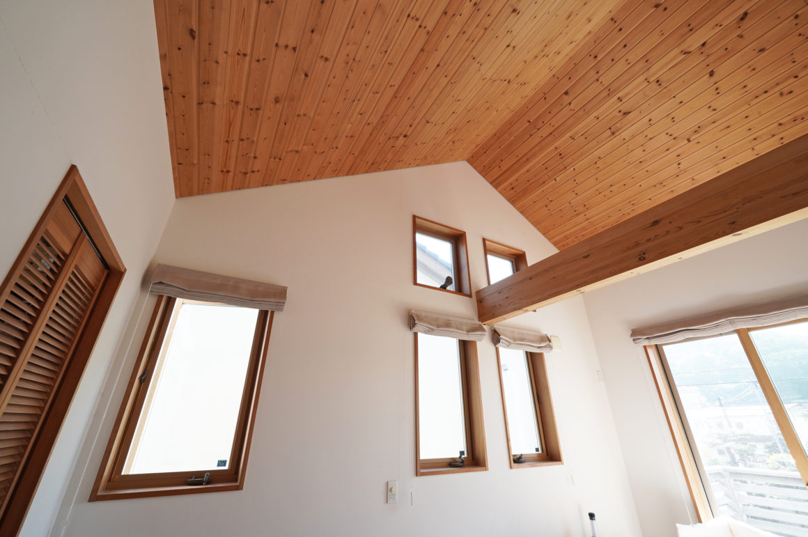 天井/ルナファーザー仕上げ 一部 パイン羽目板張り