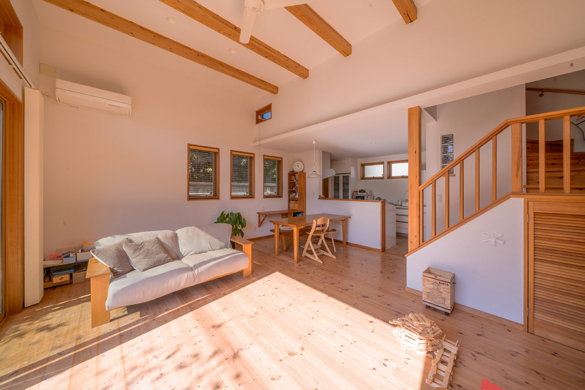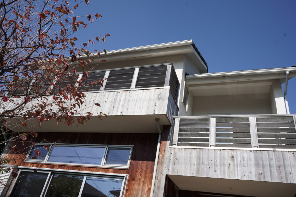 無垢材の外壁は経年変化を見せて「これが湘南のスタンダード」だと言わんばかりに矍鑠とした立ち姿を見せてくれている。施工を担当したのは逗子のみならず湘南一帯での代表的なプレステージを持つ工務店キリガヤ 。当時7社が競うことになった競合コンペを勝ち抜いた。湘南の気候風土を知り尽くしているという意味でもこの地域で圧倒的である。