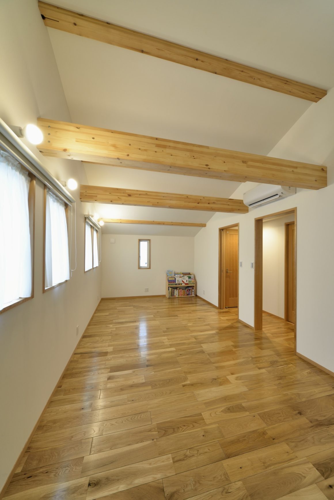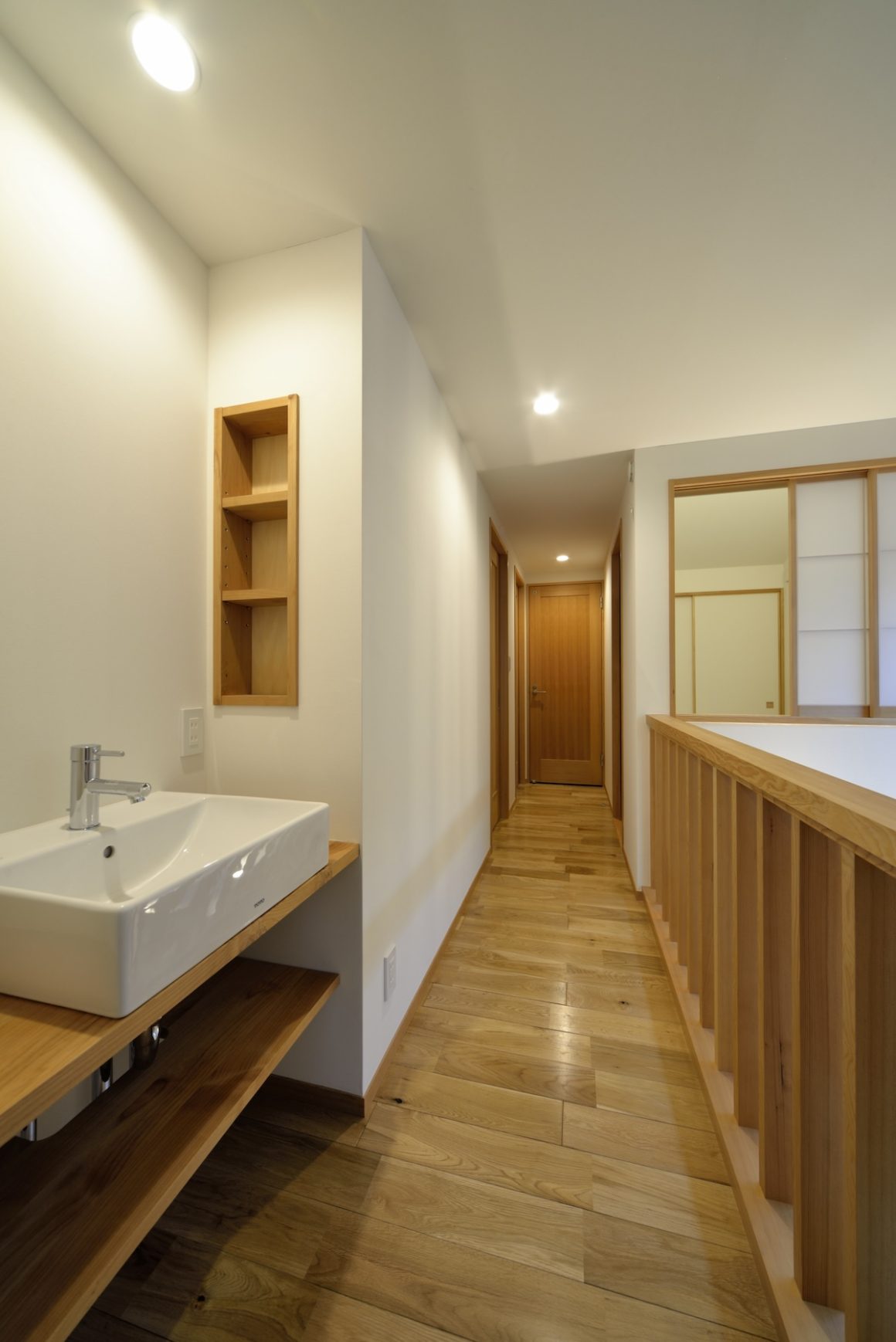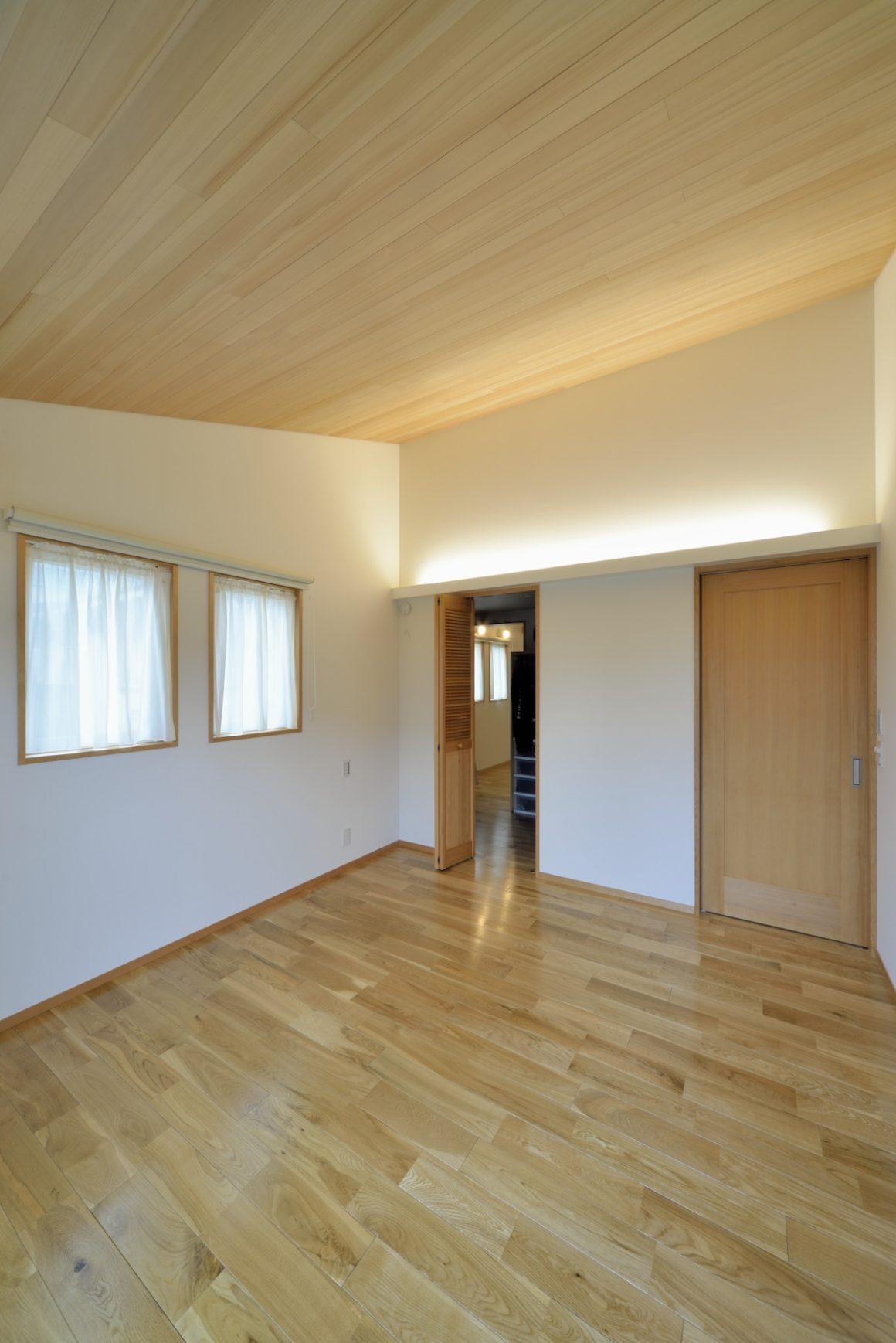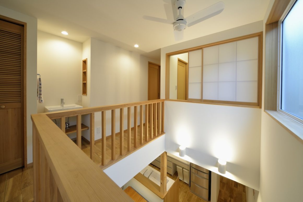 階段を上がると左手が主寝室、右手廊下の先に子供部屋と和室。どこにいても木の香りが漂っていて落ち着く