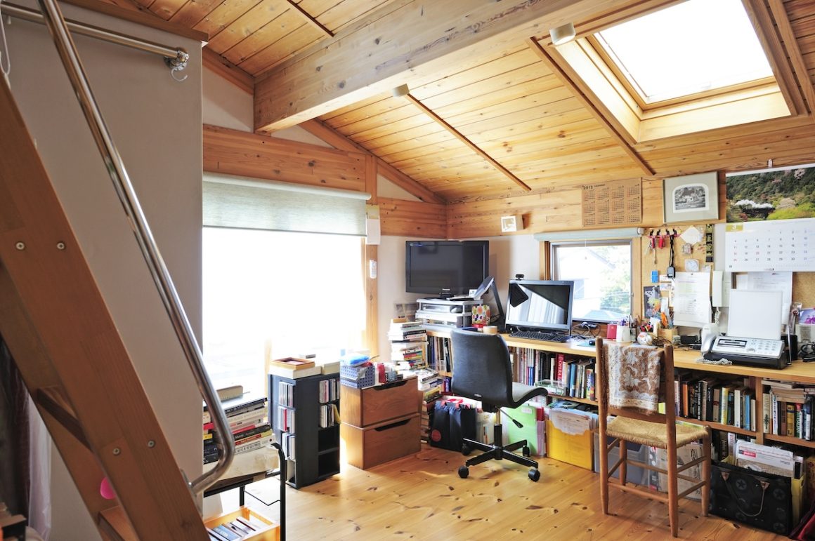 キリガヤの特徴のひとつであるスキップフロはこの頃からすでに多用されていました。部屋それぞれに変化を持たせることができるし、なんといっても収納を多く取ることができる(通常のおよそ1.3〜5倍といわれている)ことは居間でも建築事例が多いことでも証明されています。さらにどこにいても家族の気配がいつも感じられることも嬉しい。