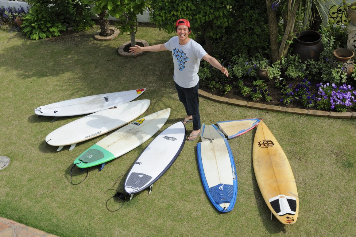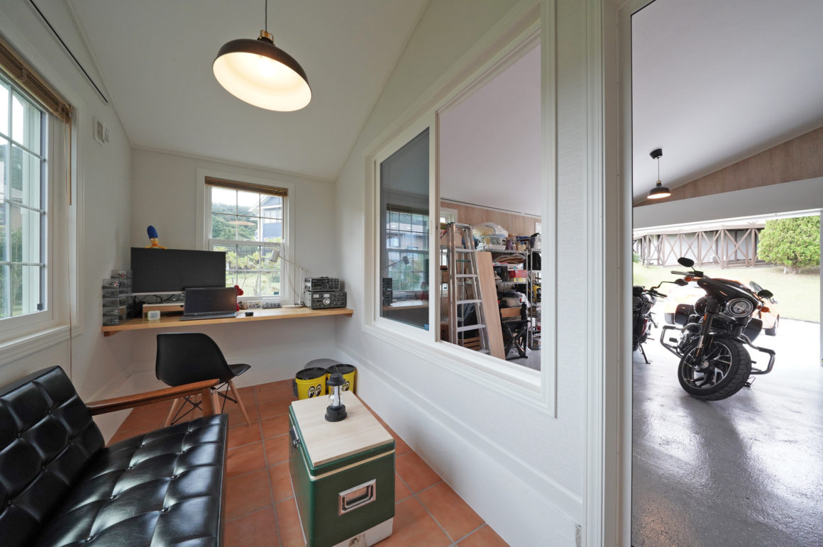 サーフィンや釣り、バイク好き、自然とふれあう終の住処。生活は便利な都会生活の対極にある暮らし。大学卒業後大手IT企業に就職、15年間日々パソコンと共存する生活でした。しかし心のどこかで、自然と触れ合う人間的な暮らしを諦めることはできず「毎週海に行くんだったらいっそ移住したら?」という奥様の一言が背中を押すことに。大きなアウトドアデッキやガレージを備えた暮らしこそがやりたかったこと、外房のダイナミクスですと話します。