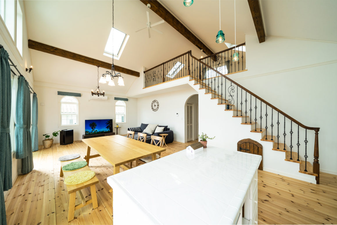 ご主人は趣味の釣りが高じて勝浦に完全移住。3年間は別荘として使用しつつついにはここが主たる住まいとなりました。約140坪の敷地におよそ50坪の家。大空間のリビン&ダイニングでも冬暖かいのは断熱性が高い証左です。大屋根の豪快な外観は、勝浦のミレーニアタウンによく似合います。遠くに青く大きな太平洋の水平線を見る毎日。魚や野菜も豊富な勝浦でゆったり暮らしたいものです。