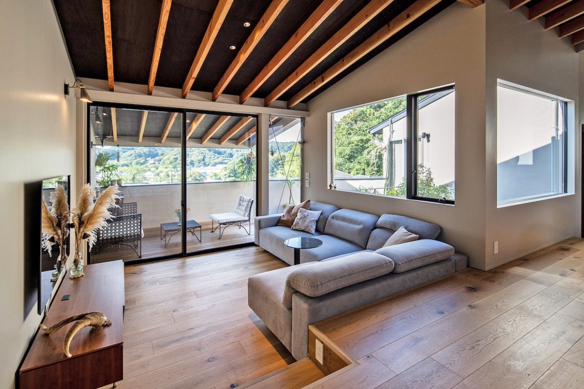 この土地は大きな谷戸になっており、この家が建つ北斜面からは鶴岡八幡宮の屋根や鎌倉の中心地を見下ろすことができる。建物を南側に開放するというセオリーに反して北側の光景を得るための設計は、この家の価値を極限まで高めている。永遠に失うことのない資産価値だ。