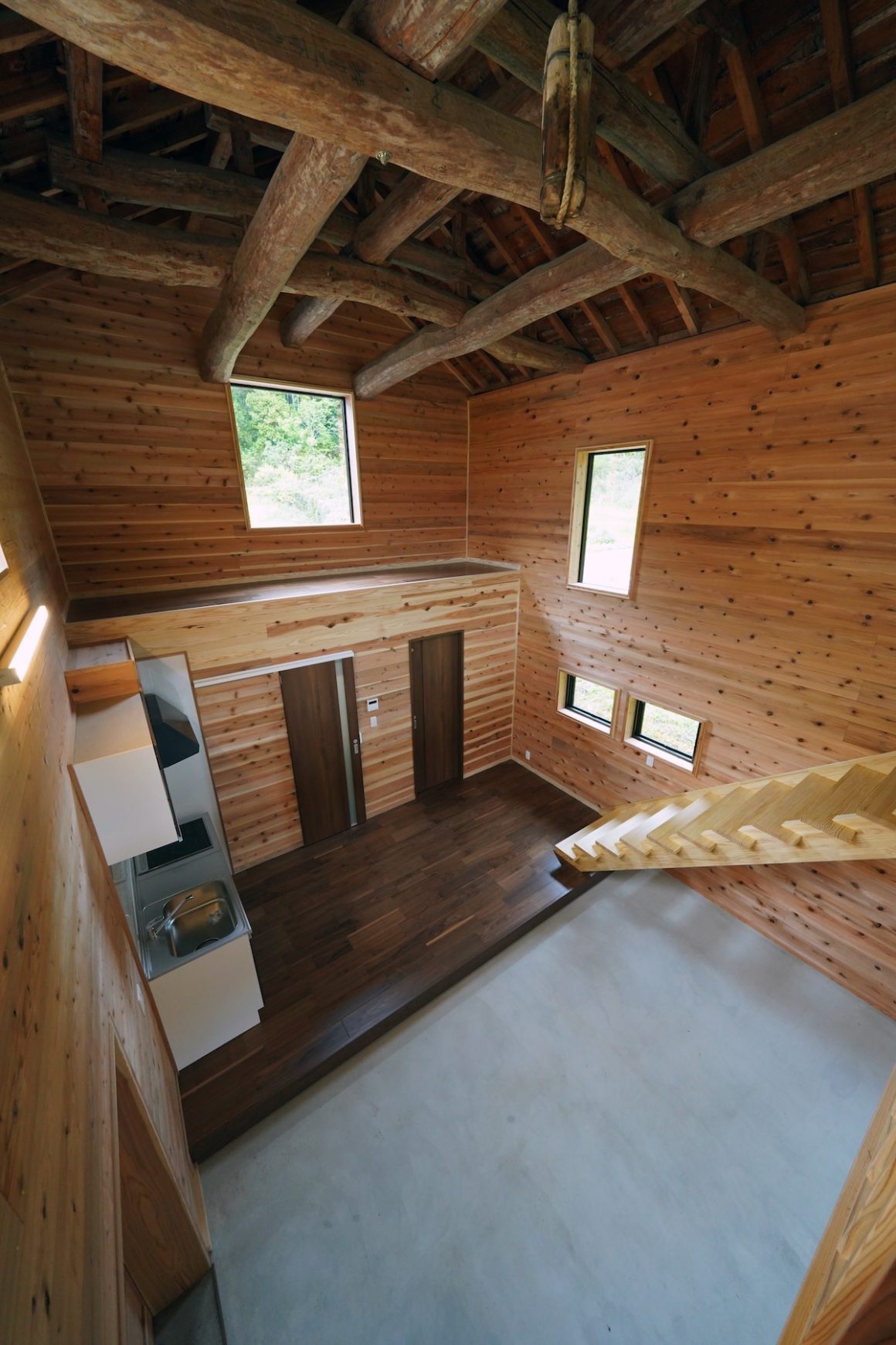 ほどなく大きな敷地に母屋、納屋などの古い建物が残り、広い畑や田んぼもある不動産を取得。その皮切りに納屋として使われていた建物を再生、リノベーションすることに。この建物は当初は倉庫として予定していましたが、しだいにシャワーやキッチンも必要だろうとミニマムな住宅設備も導入しました。2拠点生活の場として暮らすこともできます。