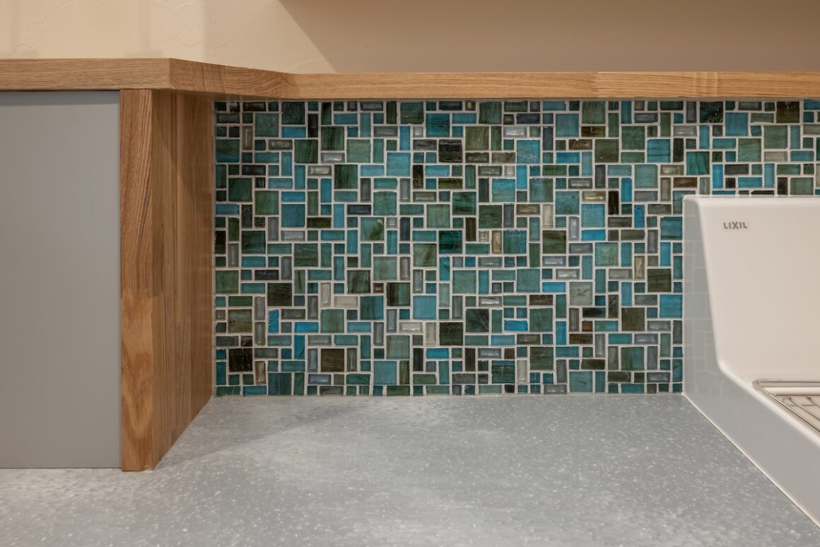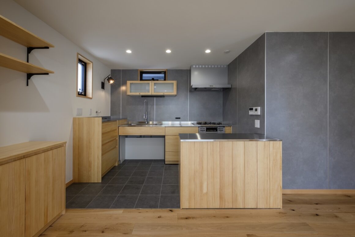 キッチンはステンレストップと木の風合いとのコンビネーションが機能美を醸し出しています。