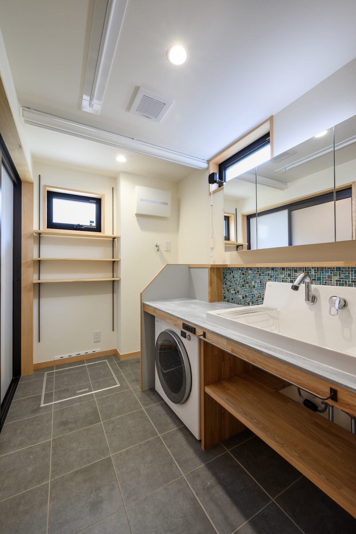 洗面、ランドリースペースと機能を集約したバスルーム。
