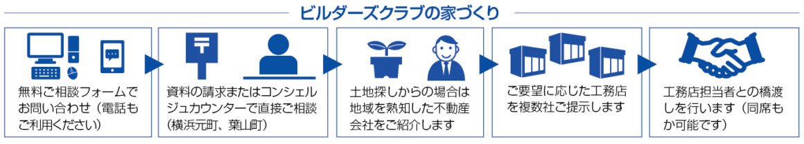無料相談会(完全予約制)もご利用ください。 ビルダーズクラブではみなさまからのご相談にお答えするために、横浜元町と葉山町にコンシェルジュカウンターで無料相談会を開催しています。完全予約制ですのでまずはウエブサイト・お問い合わせフォームからお申込みください。皆様のご相談内容にしっかりお答えできるよう、事前に詳細をお知らせください。